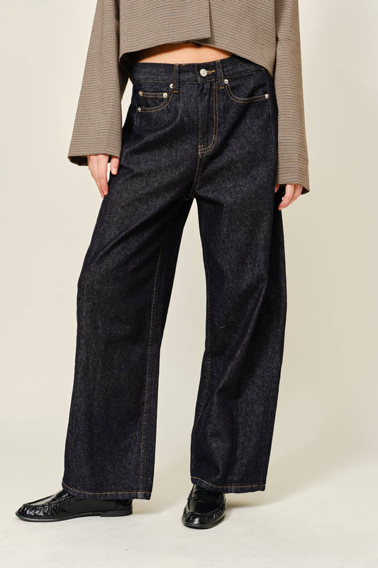 Unwashed barrel leg jeans