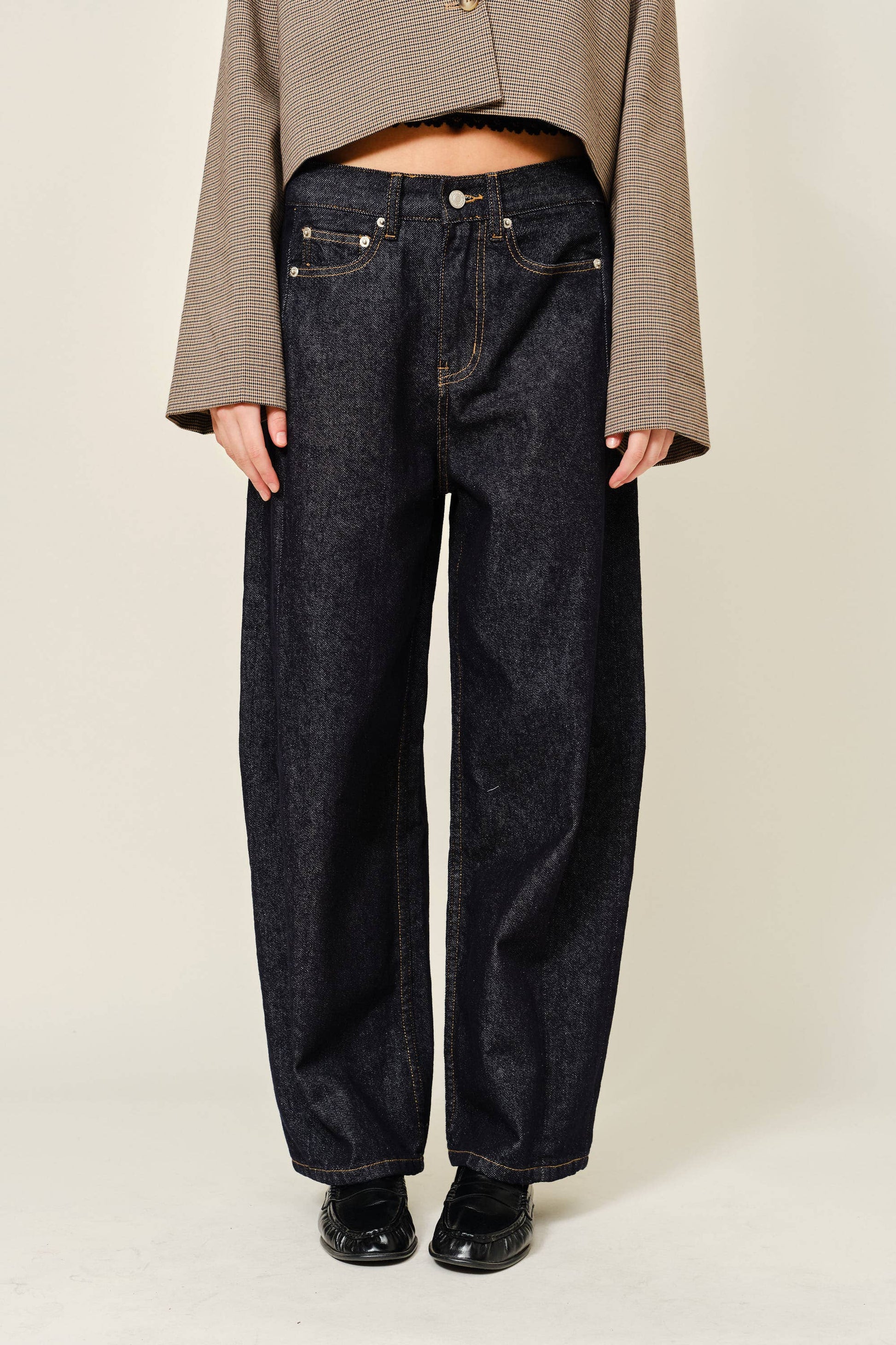 Unwashed barrel leg jeans
